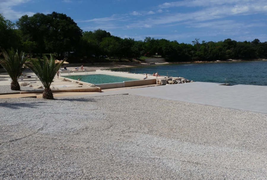 Beach Lokvina velmi prostorný, ale aktuální a měnící se terén. Jedna část je skalnatá s betonovými plošinami a přístupy ve vodě, zatímco v jiných částech štěrku. Co dělá naše...